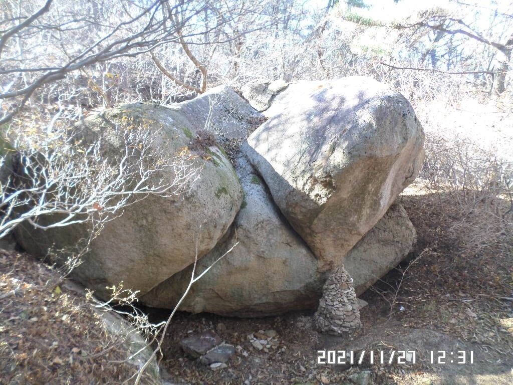 ▼ 12시29분 수박샘 지나온후 1망루(상학산)로 가는길 .. 왼쪽에 .. 여근바위