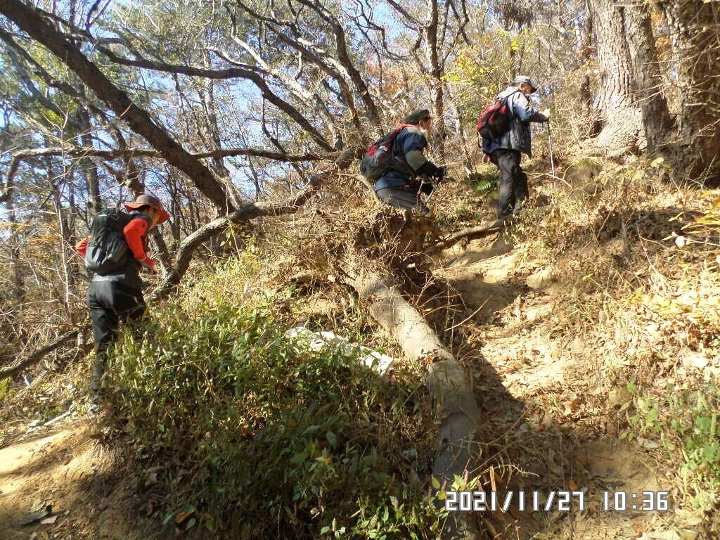 ▼ 12시38분 일행의 부실로 상계봉 1망루 등정 포기하고 .. 공해마을로 하산길 접어든다