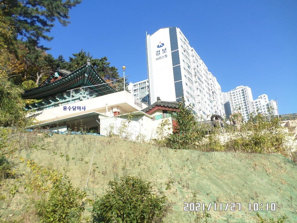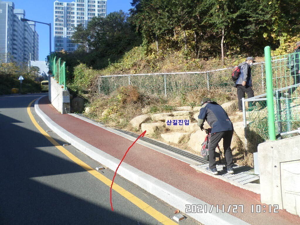 ▼ 10시09분 용수달마사 앞을 지나면 바로 오른쪽 화신동영아파트 진입도로 3분 정도 올라가면 등산로 입구다