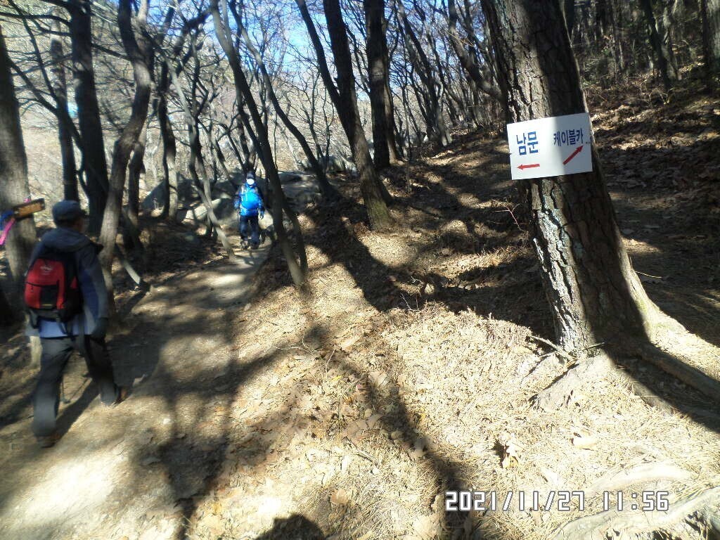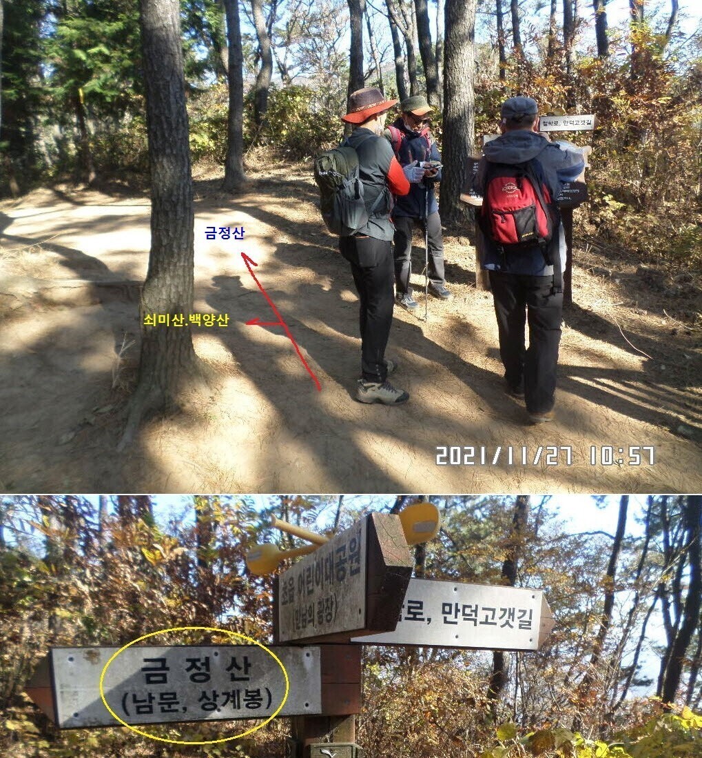 ▼ 10시57분 능선 삼거리에서 이정표 금정산 방향으로 진행