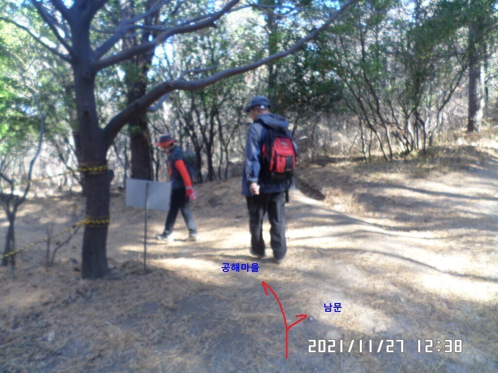 ♤09:59 미남역(5번출구)→10:01 온천3파파출소→10:07 경보이리스힐아파트앞→10:09 卍용수달마사앞→화신동영아파트 진입로→10:12 산길진입→10:27 체육시설→10:29 산불감시초소→10:39 쉼터(운동기구)→10:49 돌탑→10:54 만덕고개(생태터널)→11:05 석불사갈림길→11:07 간식(16분)→11:37 케이블카.남문갈림길→11:50 삼거리(석불사갈림길)→12:05 남문마을→12:15 금정산성 남문→12:26 수박샘→12:31 여근석 빽→12:38 공해마을갈림길→13:01 공해마을(부산 금정구 금성동 금산사입구) 도착