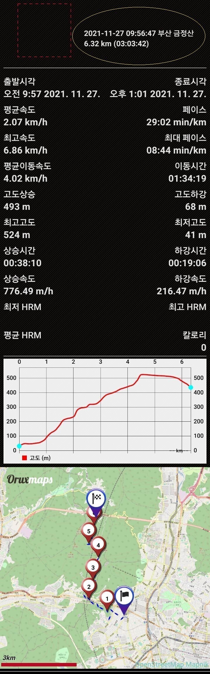 ▼ 부산 금정산(미남역~만덕고개~남문~공해마을) OruxMaps 산행거리 6.32km