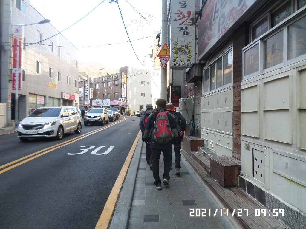 ▼ 09시59분 미남역 5번 출구에서 중딩친구4명이 미팅되어 금정산 힐링산행이 시작된다. 온천3파출소 방향으로 13분 정도 지나면 등산로입구다