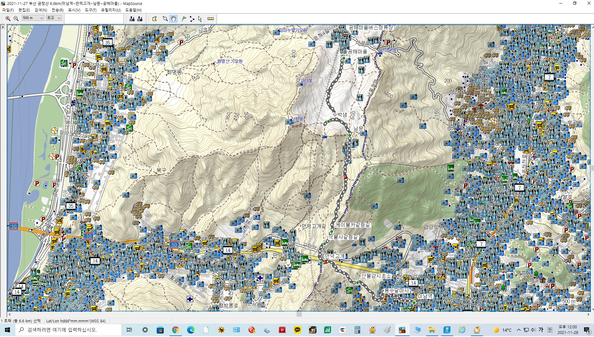 ▼ 부산 금정산(미남역~만덕고개~남문~공해마을) GARMIN GPS 산행거리 7.08km