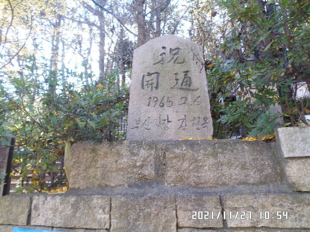 ▼ 10시54분 만덕고개에 있은 도로개통 기념비 부산시장 김현옥 1965년2월6일